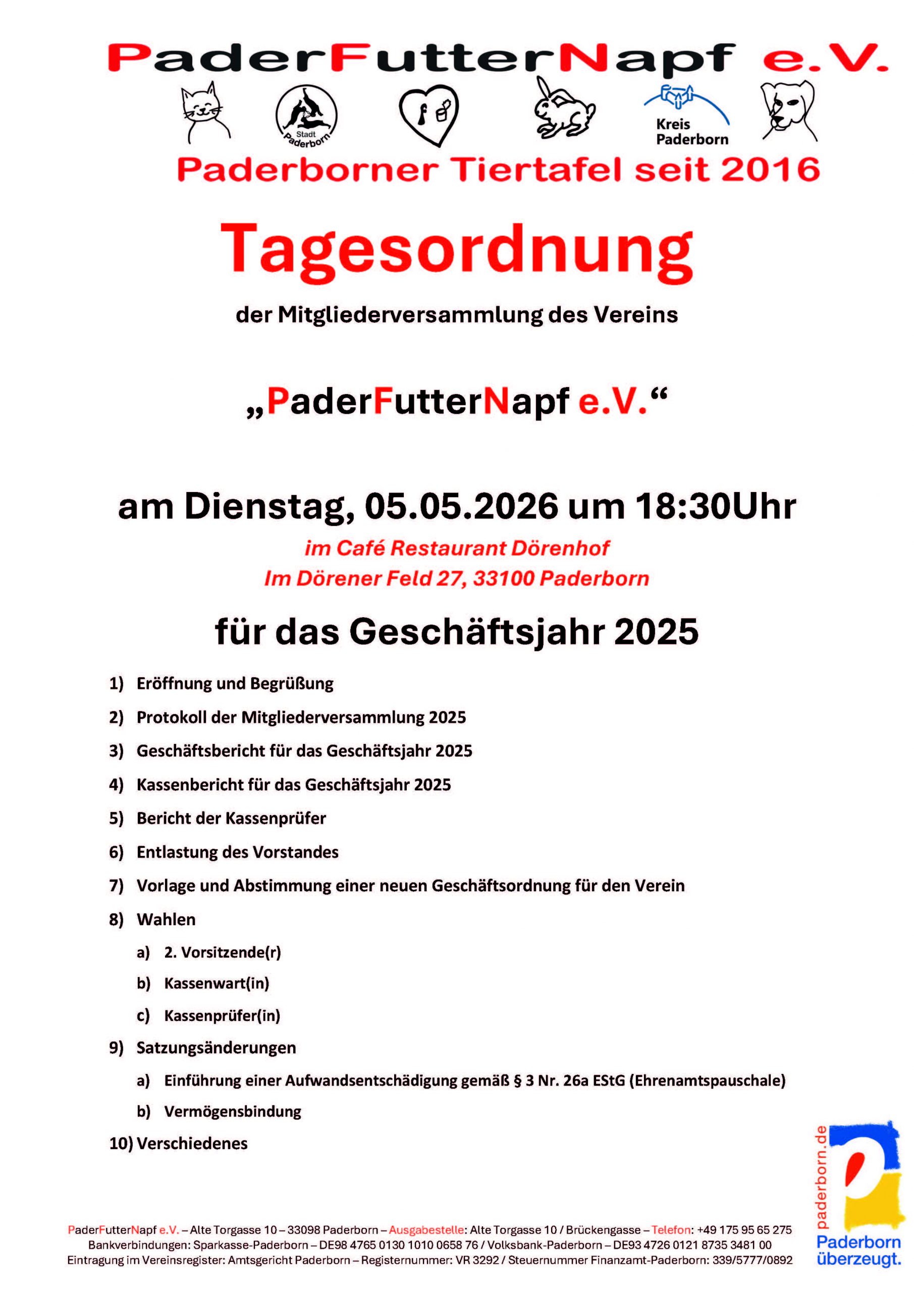Paderborn“ statt. Wir haben Futter für Hunde, Katzen, Nager und Vögel bereit.