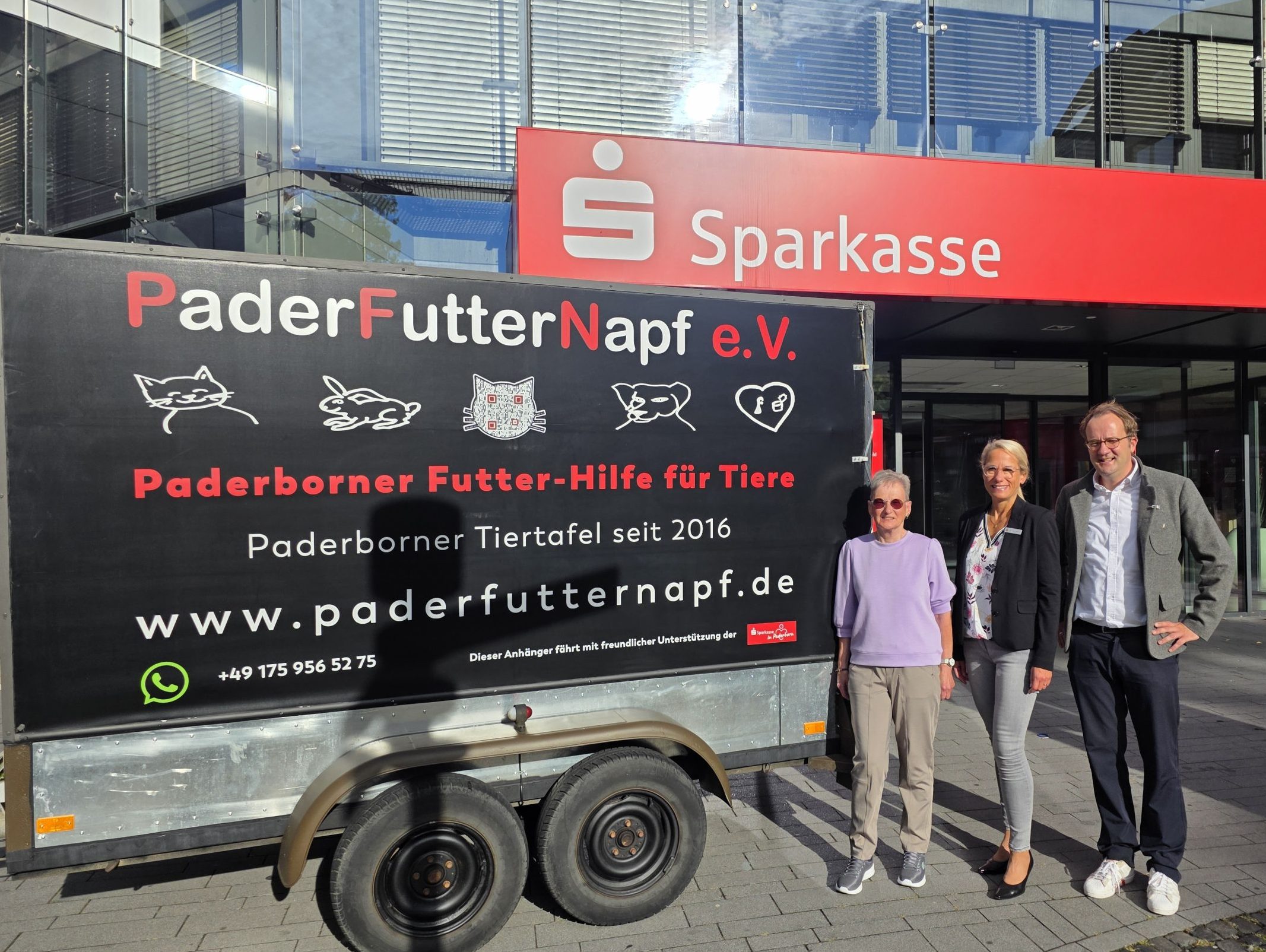 v.l.n.r.: Kassenwartin Karin Grieser vom PaderFutterNapf, Anja Jürgens und Pascal Döpker von der Sparkasse Paderborn
