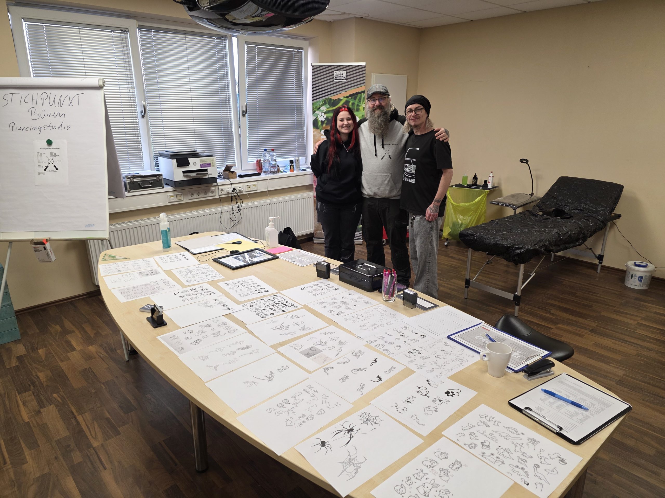 Die Tätowierer von Körperkunst Büren und die Piercer von Stichpunkt Büren, vermittelt durch Fressnapf-Mitarbeiterin Bianca Schwede, richteten sich kurzerhand häuslich ein und schenkten zahlreichen Interessierten bleibende Kunstwerke – auf der Haut und im Herzen.