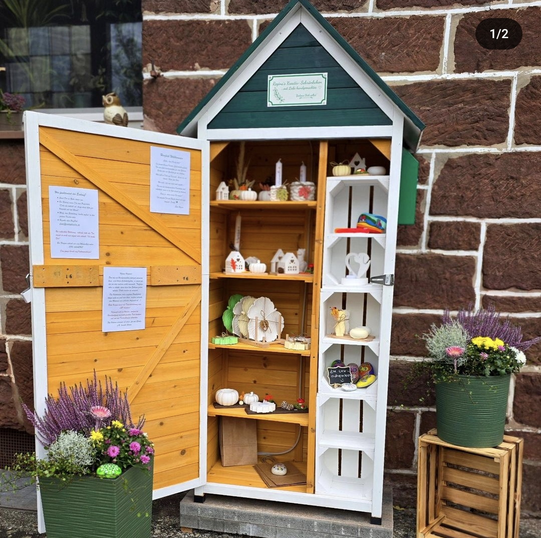 Diese Aktion wird auch im neuen Jahr fortgesetzt und für jedes Unikat landen 2€ für uns in der Spendendose. Wer uns und die liebe Regie unterstützen möchte, findet das Schränkchen in Herbram, Sandheide 1.