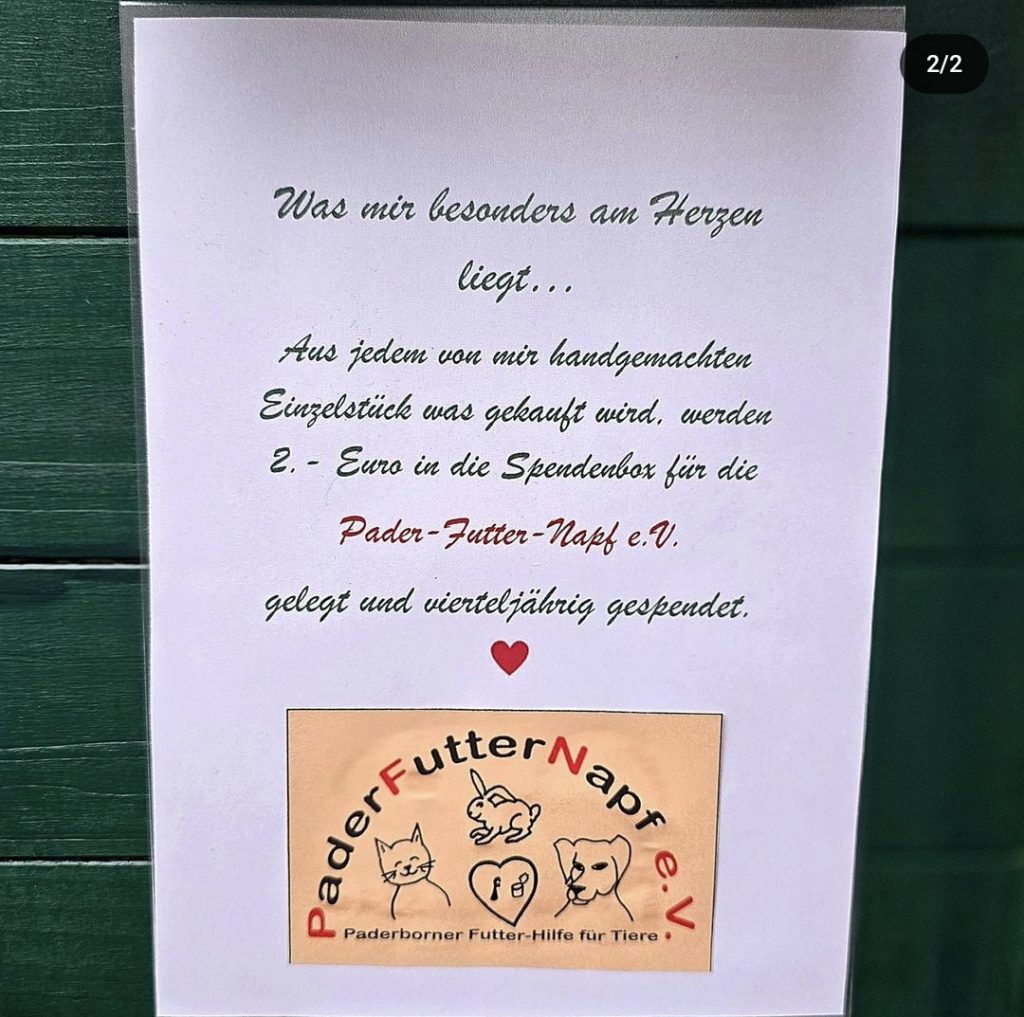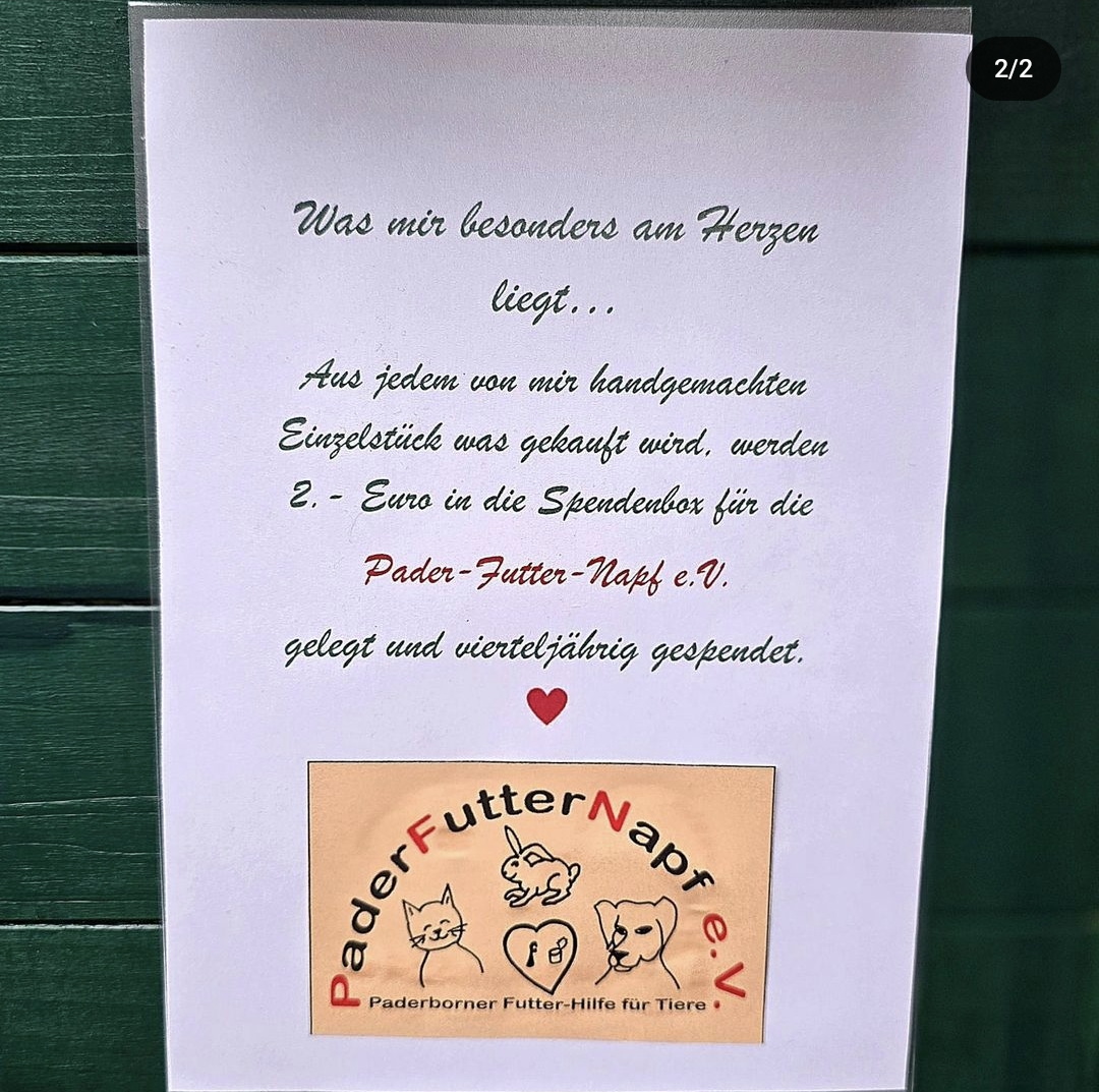 Seit drei Monaten hat sie von jedem handgemachten Einzelstück, dass in ihrem Schränkchen gekauft wurde, hat sie 2,-€ in die Spendenbox für unseren Verein gelegt. Es sind 51,80€ zusammengekommen, für die wir uns ganz herzlich bedanken.